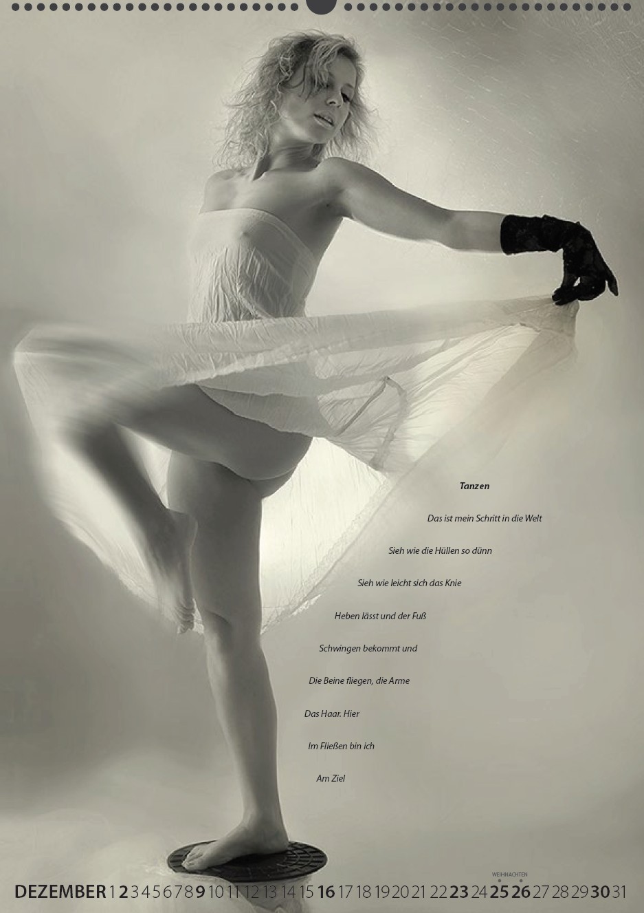 TANZEN Das ist mein Schritt in die Welt Sieh wie die Hüllen so dünn Sieh wie leicht sich das Knie Heben lässt und der Fuß Schwingen bekommt und Die Beine fliegen, die Arme Das Haar. Hier Im Fließen bin ich Am Ziel