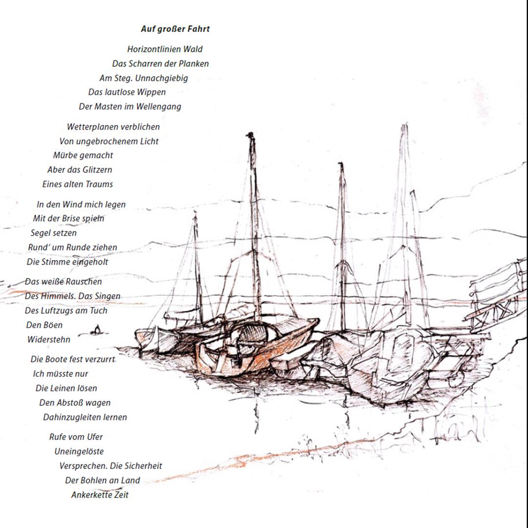 Nun liegt das Ergebnis der Zusammenarbeit von Holger Uske und Dieter Kiehle vor: eine Text - Grafik - Mappe mit 16 Kartonblättern im Format 30 x 30 cm. Auf jedem Blatt ist ein kongenial gesetzter Text zu einem Bild zu sehen. Autoren und Gestalter sind gespannt, wie diese vom tradierten Künstlerbuch abweichende Gestaltung bei Literaturfreunden und Kunstliebhabern ankommen wird.