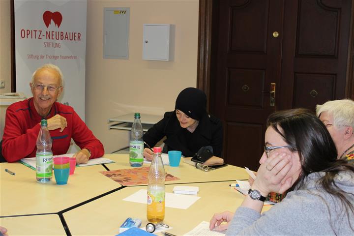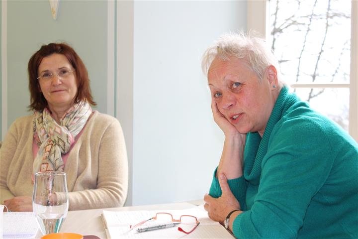 | In bewährter Weise wirkten für die Lyrikgruppe (Bilder links und rechts) Nancy Hünger als Seminarleiterin und für die Prosagruppe (Bilder nächste Zeile) André Schinkel als Seminarleiter, die zugleich als Anreger, Kritiker und Lektoren agierten. Unter Leitung von Ulrike Blechschmidt gelangen auch der Jugendgruppe mit diesmal sechs jungen Teilnehmerinnen tolle Schreibergebnisse. Die 2017er Schreibwerkstatt stand unter dem Motto "Hurra, 17!", was zu Zahlenspielen und historischen Ausflügen Anlass gab. |  | |