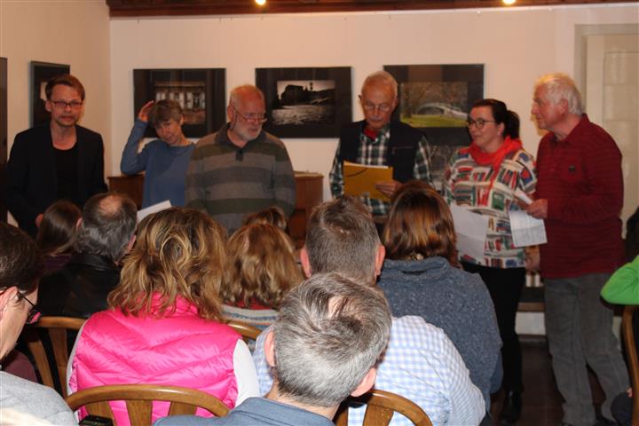 "Lyrik-Kette" im Baumbachhaus mit Seminarleiter Peter Neumann (links). |